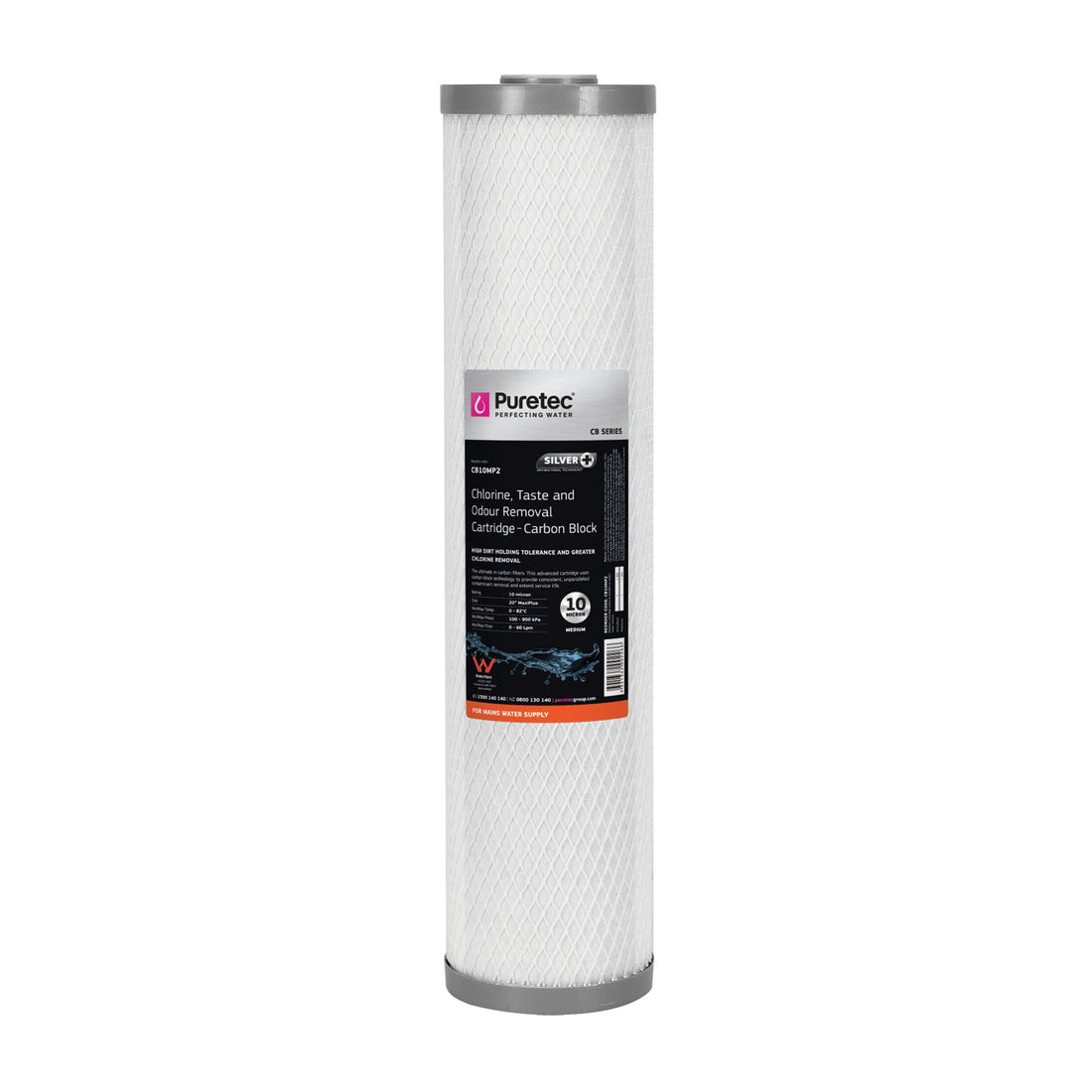 Carbon Block Standard Dia 2.5" Cartridge, 20", 10um
